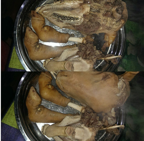 Очень распространенное блюдо в ближневосточных странах. Голову, рубец и ноги барана очень долго варят, после чего его разделывает только самый уважаемый член семьи. И самый хладнокровный, скорее всего.