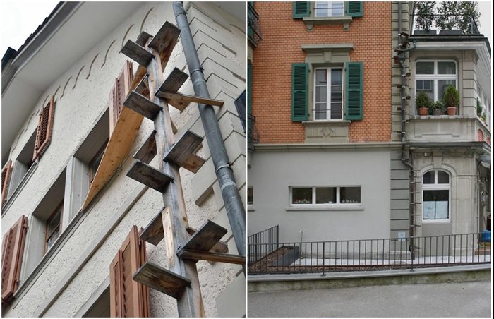 Все, кто хоть раз бывал в Швейцарии, наверняка обращали внимание на странные лесенки на фасадах жилых зданий. На пожарные выходы они никак не похожи, т.к. вес взрослого человека не выдержат. Так зачем же они понадобились?