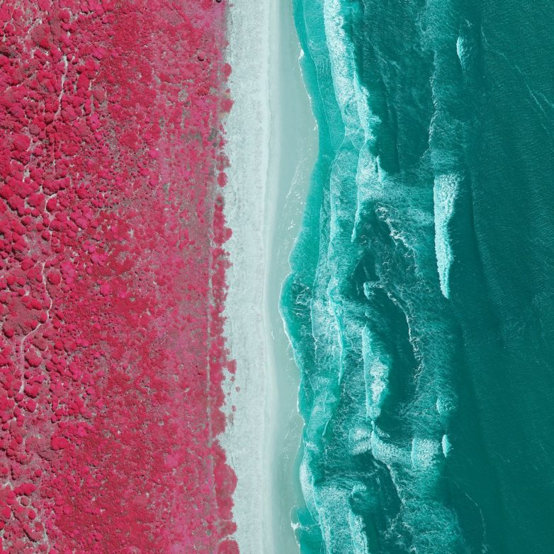 Чад Аджамян (Chad Ajamian) — талантливый фотограф из Сиднея, Австралия. Он сделал серию аэрофотоснимков наводнения в Новом Южном Уэльсе. Сцены сняты с помощью NSW Spatial Services в ближнем инфракрасном диапазоне после катастрофы. Уникальная цветовая гамма позволяет специалистам по чрезвычайным ситуациям лучше отличать затопленные районы от растительности по сравнению с обычными аэрофотоснимками.