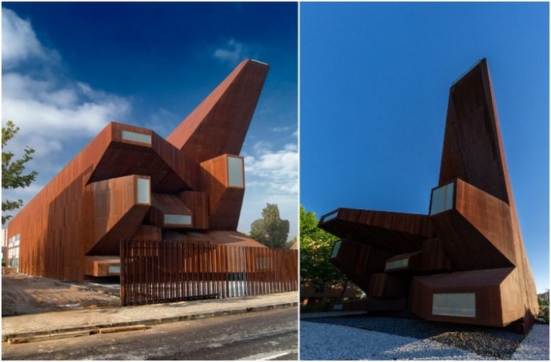 В пригороде Мадрида относительно недавно появилась футуристическая приходская церковь Parroquia Santa Monica (церковь Санта-Моника). Автором проекта сакрального объекта стал именитый архитектор Игнасио Висенс вместе со специалистами собственного бюро Vicens + Ramos, которые не раз участвовал в разработках дизайнов культовых объектов. Стоит отметить, что церковь Санта-Моника удивляет не только невероятной формой, но и материалами из которых была возведена. Основой строения стал металлический каркас, обшитый гипсокартонными листами и облицованный панелями из кортеновой стали.