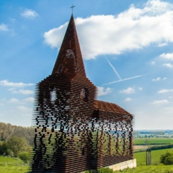 Молодые бельгийские архитекторы Петерьян Гийс и Арноут Ван Ваеренберг решили переосмыслить традиционные каноны храмовой архитектуры, превратив церковь Reading between the lines («Читая между строк») в изумительный шедевр современного искусства. Церковь высотой в 10 метров возведена из стального каркаса и сотен горизонтальных пластин. При этом пластины располагаются с промежутками, которые помогают создать полупрозрачный силуэт, меняющийся в зависимости от угла зрения. Также пролеты служат окнами, сквозь которые проникают солнечные лучи, создающие причудливую игру света и тени. В этой церкви нет никакой культовой атрибутики и даже самых скромных лавок нет, но смотрится она просто фантастически.