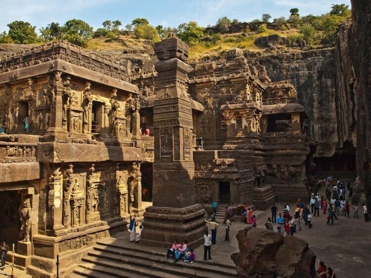 Вырубленный в скале храм Кайласы в пещерах Эллоры