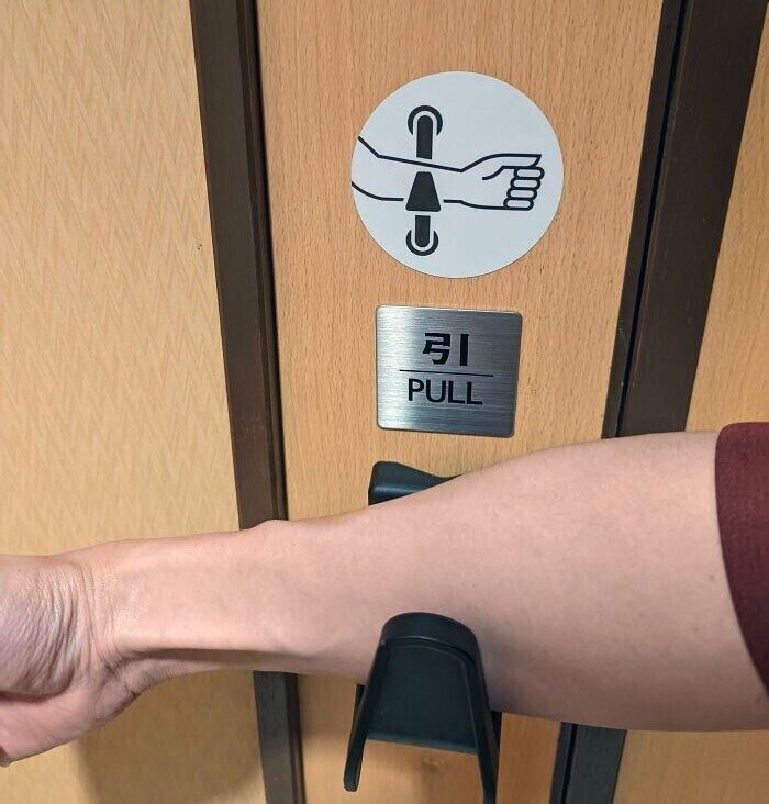 Ручка в уборной специально сделана так, чтобы можно было не пачкать только что помытые руки