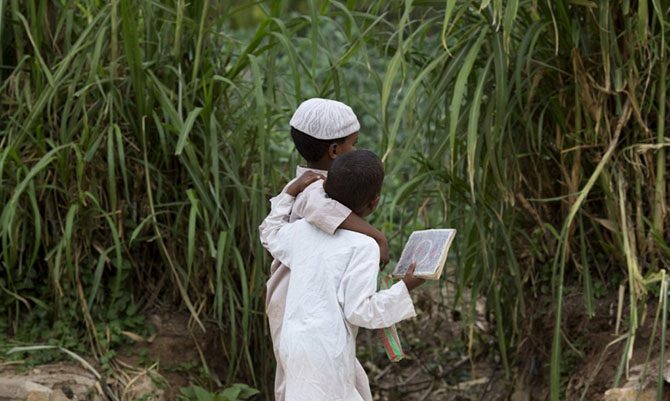 Мальчики гуляют в окрестностях города Харэр.
