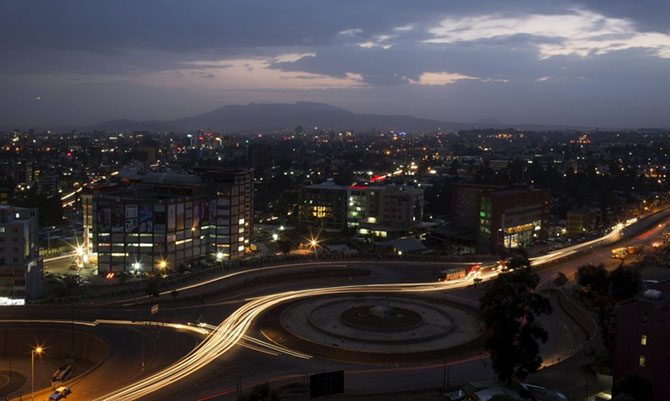 Столица Эфиопии Аддис-Абеба в ночное время суток.
