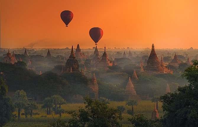 Рассвет в Пагане. Древний город Паган находится в округе Мандалай. С 9-го по 13-й век он был столицей Паганского царства, вокруг которого сгруппировались регионы, сформировавшие современную Мьянму.