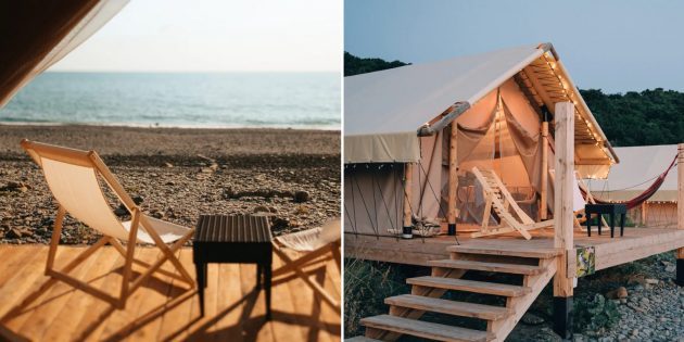 Кроме того, на территории глэмпинга можно находиться с питомцами. Но если это собака крупной породы, то потребуется дополнительное согласование при бронировании. Путь до ближайшего пляжа займёт 15 минут.