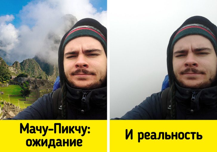 Порой путешественники тратят уйму времени и сил, чтобы добраться до заветных мест и насладиться прекрасным видом. Или просто хотят отдохнуть по-человечески, но жизнь подкладывает им свинью. Когда реальность ну вообще не оправдывает ожиданий, главное — не опускать руки, а найти повод посмеяться.