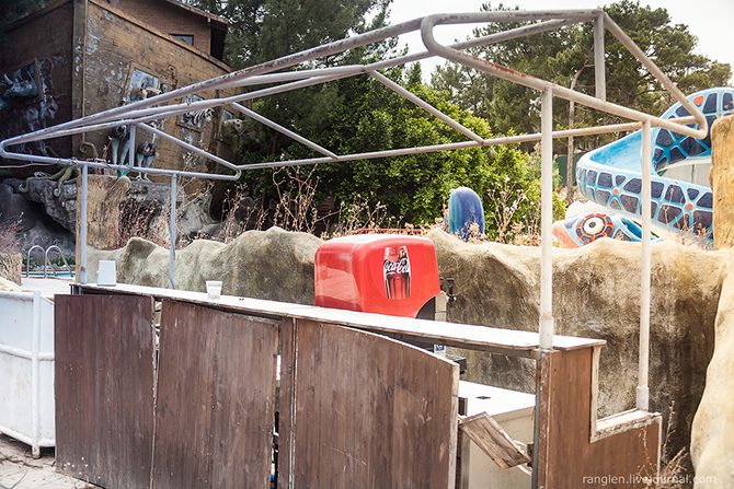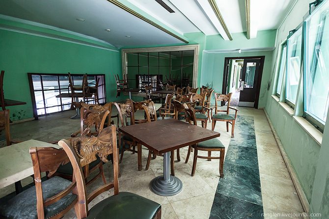 Любопытных туристов, пытающихся проникнуть на территорию бывшего рая встречают заброшенные и постепенно приходящие в упадок здания ресторанов: