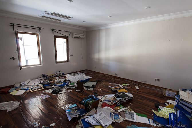 Местные говорят, что хозяин отеля набрал кредитов, по которым не смог расплатиться и пропал без вести, возможно, здесь побывали сотрудники налоговой инспекции в поисках финансовых документов: