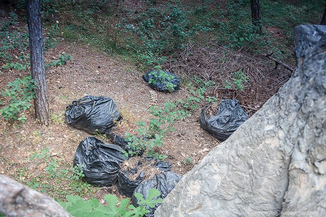 На территории валяются мешки с собранными несколько лет назад листьями: