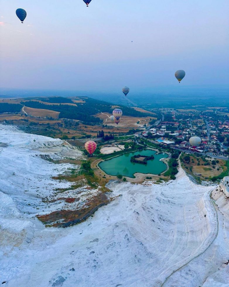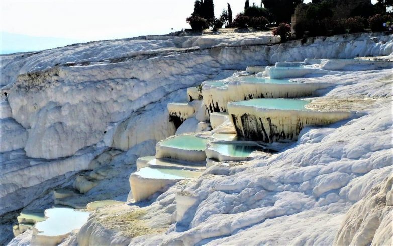 Памуккале́ (Pamukkale, в переводе «хлопковый замок») — термальные источники в провинции Денизли на юго-западе Турции. Благодаря насыщению вод кальцием, источники за столетия сформировали каскад террасных ванн, украшенных белоснежными кальцитовыми сталактитами.