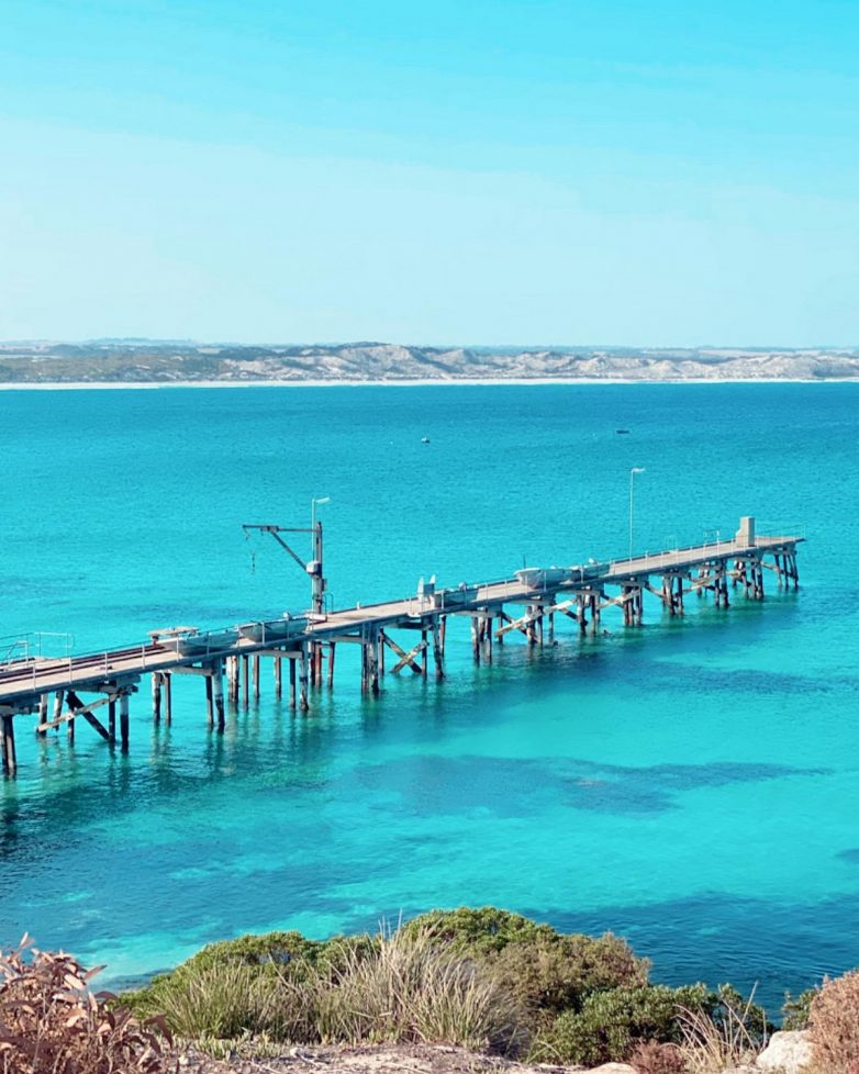 Пристань в заливе Вивонн раскинулась над двухцветными бирюзовыми водами и представляет собой идеальную точку обзора, с которой можно любоваться пейзажами и делать завидные снимки того, что многие называют самым впечатляющим пляжем Южной Австралии.