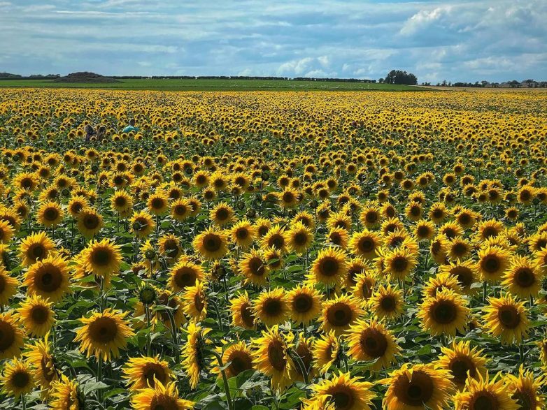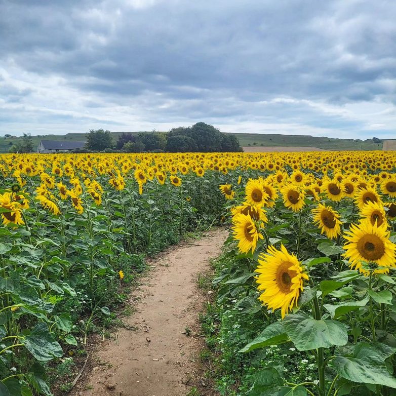 Живописное поле подсолнухов в Великобритании