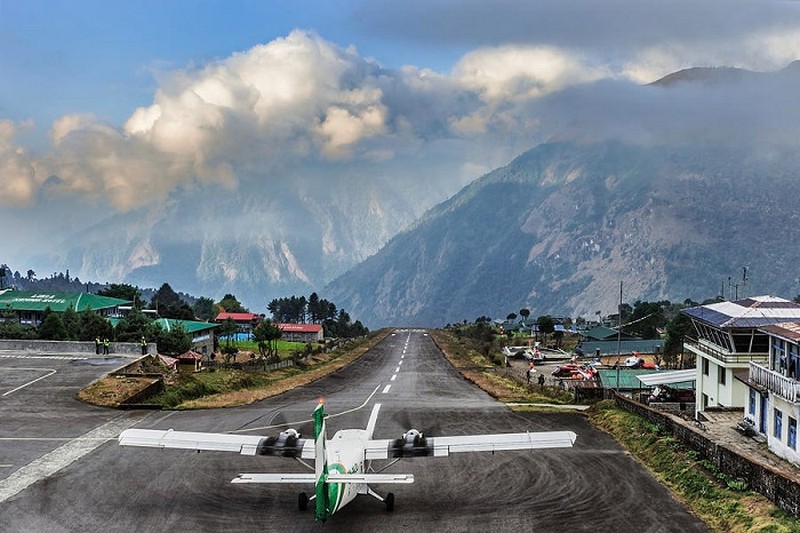 Tenzing–Hillary Airport, прежде всего, известен как один из самых опасных на планете аэропортов. А ещё он завоевал огромную популярность у альпинистов. И этому предшествовала особая история: в 2008 году аэропорт назвали в честь первых покорителей Эвереста — Тенцинга и Хиллари, причём именно под руководством последнего ещё в далёком в 1964 году как раз и построили взлётно-посадочную полоса. Самое интересное, что стоимость её тогда составляла рекордно мизерные 2650 долларов, а посильную помощь в возведении оказали местные шерпы, которые сами попросту утоптали почву, и только 37 лет спустя полосу заасфальтировали. Но и сегодня взлёт и посадка по ней доставляет не меньше экстрима, чем альпинизм сам по себе, ведь, имея длину всего лишь в 527-метров, она располагается на высоте 2845 метров над уровнем моря ещё и под уклоном в 11,7 %.