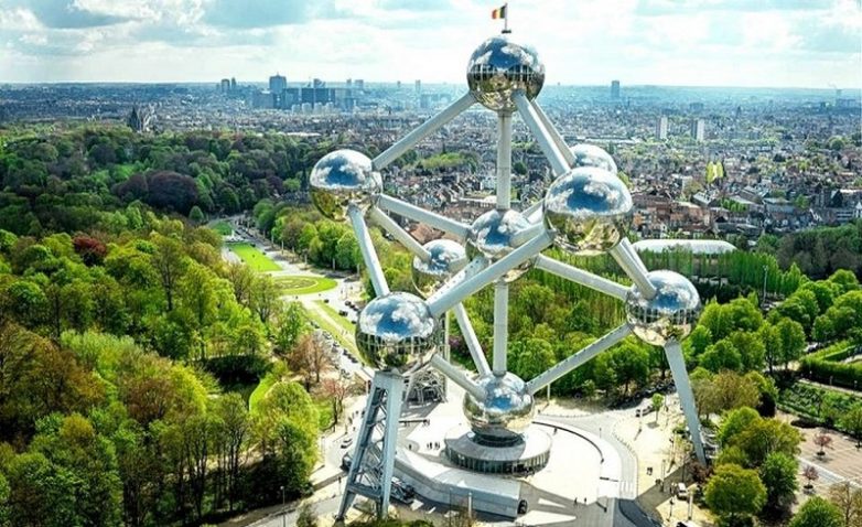 Атомиум уже давно является одним из главных туристических символов Брюсселя. И хотя он был построен давно, его вид до сих пор намекает на архитектуру будущего. И это при том, что внешне объект представляет собой модель кристаллической решетки железа, которая была увеличена в 165 миллиардов раз, и является памятником мирному атому. Атомиум был спроектирован и построен ещё в 1958 году, в рамках Всемирной выставки «Экспо-58». Футуристического вида сооружение в те времена символизирует эпоху атома, большие возможности ядерной энергии и её мирное использование для научных целей.