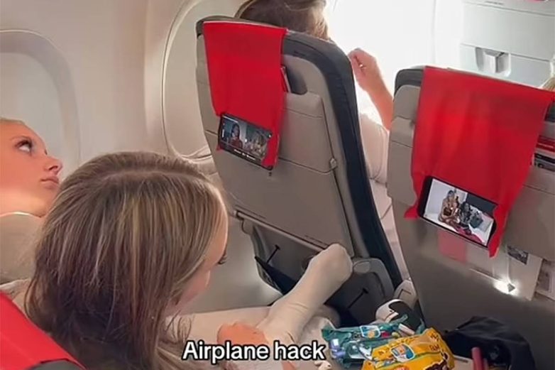 Такая конструкция позволила пассажирке смотреть фильмы во время полета, пока телефон висел на спинке переднего кресла. Однако пользователи посчитали лайфхак путешественницы эгоистичным, заметив, что она даже не спросила разрешения у попутчика, сидящего спереди.