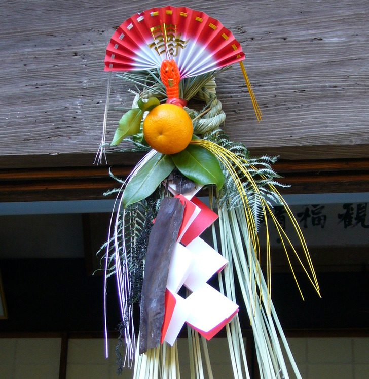 На входах в помещения вешают не рождественские венки, а симеказари (на фото выше). Это украшение из риса, соломенной веревки, сосновых веток и зигзагообразных бумажных полосок. Оно символизирует уход от прошлого и изгнание злых духов.