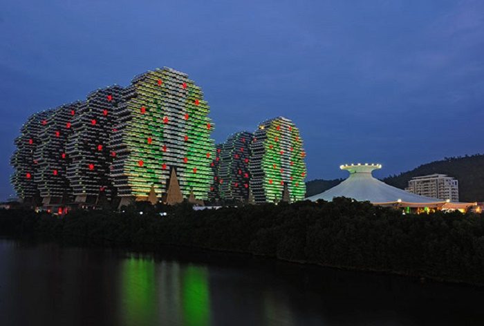 Одним из самых популярных мест отдыха в прибрежном Китае является город Санья. В этом живописном месте находится гостиничный комплекс в виде гигантских деревьев, будто собранных из кубиков Lego. Фантастический ансамбль не просто украшает горизонт Саньи, он является самым крупным отелем мира, который может предложить почти 7 тысяч комфортабельных номеров и массу незабываемых впечатлений.