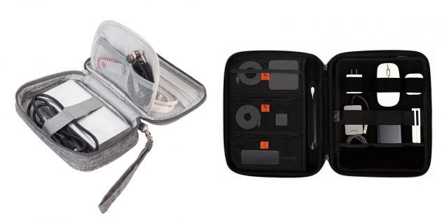 Для хранения многочисленных кабелей, адаптеров и прочих гаджетов пригодится компактный органайзер. Так устройства не придётся искать по всему чемодану, да и провода не будут спутываться.