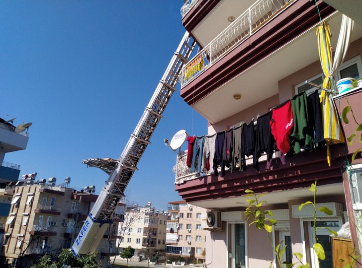 Строительные материалы для ремонта или мебель во время переезда здесь не таскают по ступенькам, а заносят в дом с помощью таких вот автолестниц с подъемником