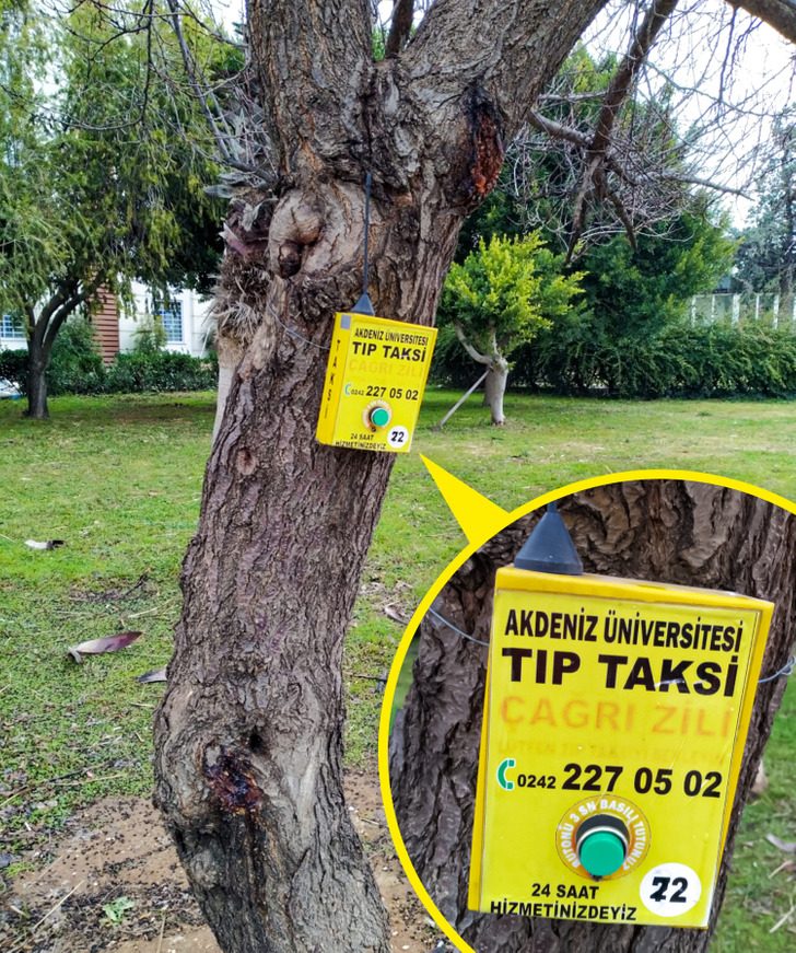 Вот так идешь по парку, а на дереве какая-то маленькая коробочка с кнопкой. Так в Турции выглядит альтернатива приложению для вызова такси