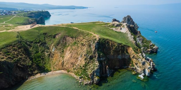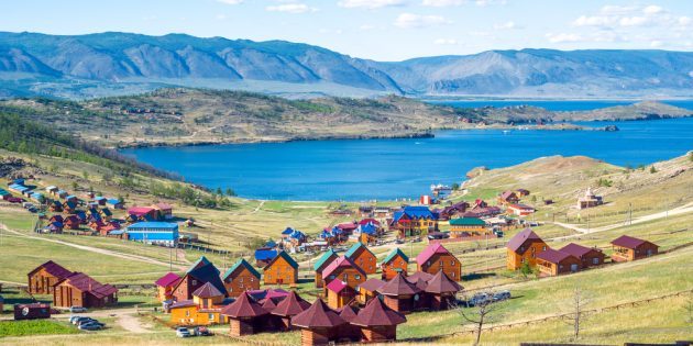 Площадь самого большого и единственного обитаемого острова на Байкале — 730 км². Зимой сюда добираются по льду, когда он тает — на самолёте, а в тёплое время с материковой части ходят паромы. Место привлекает туристов уникальными ландшафтами: небольшую лесистую часть в центре окружают степи, а в водную гладь врезается гора Жима высотой в 1 276 м. Любителям фото стоит позаботиться о дополнительной памяти для камеры, потому что снимков получится много.