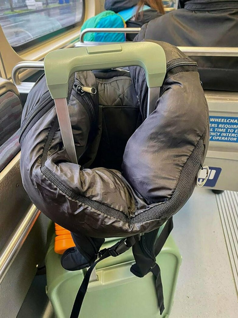 Подушка-чехол: в нее можно спрятать лишнюю одежду в самолете