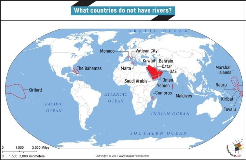 7. Страны, на территории которых нет рек