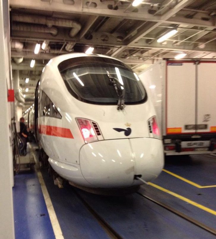 Я была в этом поезде! Я путешествовала по Европе c другом и решила сама спонтанно рвануть в Копенгаген. Села на поезд, а там разговорилась с одной датчанкой, которая ехала со своим папой. Оба отлично знали английский. Едем, и тут — опа! — резко за окном темнеет. Я у нее спрашиваю, не в туннеле ли мы, а она в ответ: «Нет, мы на судне». Думаю, что за чушь несет, наверно, языковой барьер сказывается. Но папа подтвердил, и они вместе стали убеждать меня выйти из поезда и убедиться самой. Я вышла. А оказалось, что и правда мы плывем на судне. © elinordash