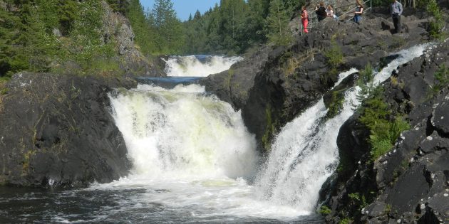 Водопады в Карелии также называют падунами. Этот расположен на реке Нижний Выг. Когда-то он был намного выше и мощнее, но после строительства Беломорско-Балтийского канала два из трёх его рукавов обмелели. Посмотреть на водопад всё равно стоит, его особенность — необычный оттенок воды, напоминающий кока-колу. Такой цвет она приобретает из-за обилия торфа в почве.