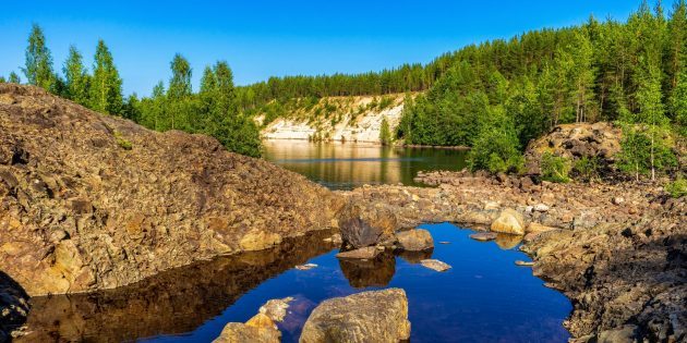 Горный парк «Рускеала» находится на берегу реки Тохмайоки в Сортавальском районе. В XVIII–XIX веках здесь были мраморные каменоломни, а сейчас на их месте туристический комплекс. Главная достопримечательность парка — Мраморный каньон. Это бывший карьер, заполненный водой изумрудного цвета.
