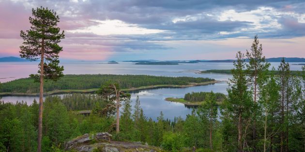 Это самое большое пресноводное озеро в Европе и второе по величине в России. У него скалистые берега со множеством узких заливов и мелких каменистых островов, но встречаются и песчаные пляжи, где можно позагорать и искупаться. Температура воды летом достигает 17–18 °С.