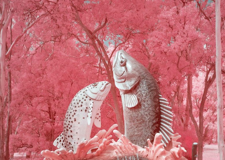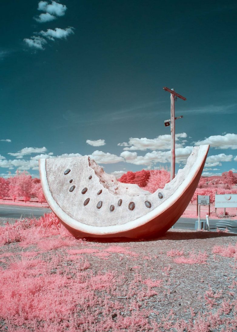 Используя переоборудованную зеркальную камеру для съемки спектра в 590 нанометров, охватывающего видимый и инфракрасный свет, Пэрис исследует культурные и социальные особенности, которые мы так часто принимаем как должное. Модификация камеры обеспечивает сюрреалистическое качество, а световой спектр незаметен человеческому глазу.