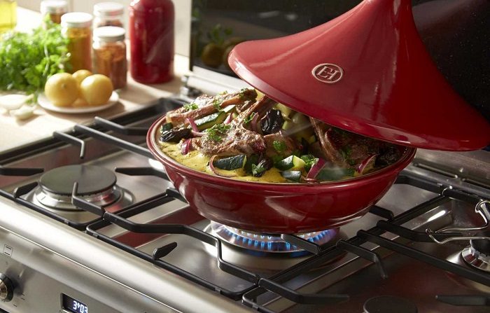 В отличие от горшочков, в которых еда томится при низкой температуре, тажин больше похож по принципу действия на сковороду – в нем продукты остаются сочными, но при этом обжариваются. Кстати, для этой посуды духовка совсем не обязательна – можно готовить на плите.