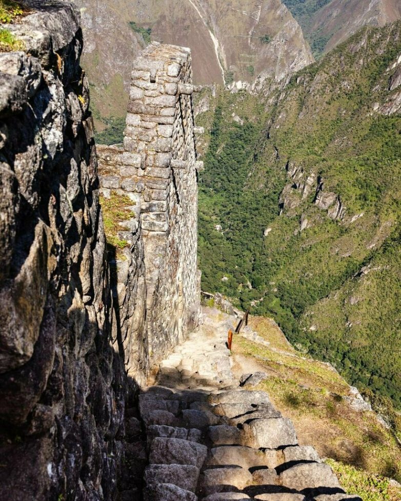 Уайна-Пикчу высотой почти 2700 метров, и на нее ведет несколько троп. Одна из тропинок получила название «лестница смерти». Несмотря на ее пугающие снимки и зловещее название, тропа его не оправдывает: никто не погиб, поднимаясь наверх. Но все-таки подъем очень крутой: с одной стороны этой лестницы находится крутой обрыв, а с другой ― скала.