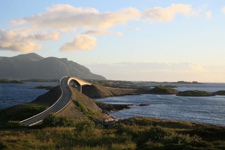 Участок двухполосного шоссе находится между населенными пунктами Молде и Кристиансунн и связывает небольшие острова через Атлантический океан. Летом в водах можно наблюдать тюленей и китов, а осенью дорога становится по-своему привлекательной благодаря сильным ливням. Длина участка всего 8,3 км, включая 8 мостов. Самый интересный среди них — Сторсезандетский, его еще называют «пьяным». Под определенным углом зрения он напоминает американскую горку.