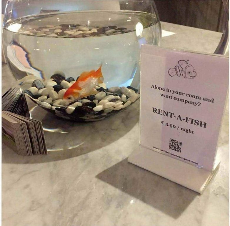11. В одном из отелей, если одиноко, предлагают взять в аренду друга-рыбку