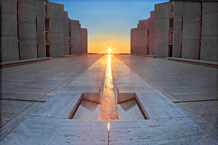 Институт биологических исследований в Сан-Диего – это независимый некоммерческий научно-исследовательский институт, основанный в 1960 г. Джонасом Солком. Этот ученый один из первых разработал вакцину против полиомиелита. Само собой разумеется, институту понадобилось здание, которое бы привлекало своими формами лучших исследователей мира. Поэтому к проектированию был подключен Луис Кан – легендарный архитектор, разрабатывавший градостроительный план Филадельфии.