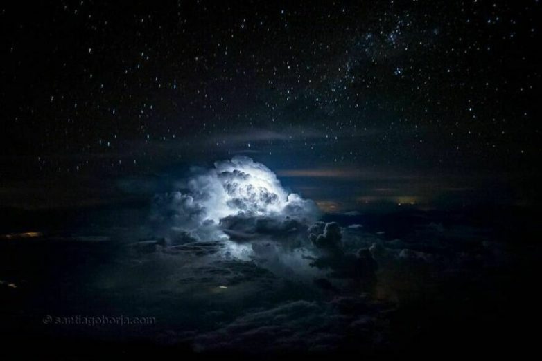 Оказывается, охотники за суровой погодой есть не только на земле, но и в небе: познакомьтесь с пилотом по имени Сантьяго Борха (Santiago Borja), который по совместительству фотограф. Его, как и многих, завораживают превратности погоды: шторма, грозы, полярные сияния. Но только снимает он все это с высоты, прямо из кабины самолета. И недостаточно будет сказать, что его снимки захватывающие, их точно нужно увидеть!