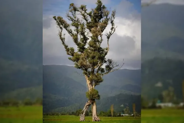 Новозеландцы выбрали дерево 2024 года: им стал необычный экземпляр северного рата с двумя стволами, выглядящий так, будто он бредет через пустое поле, размахивая руками – ни дать ни взять толкиеновский энт.