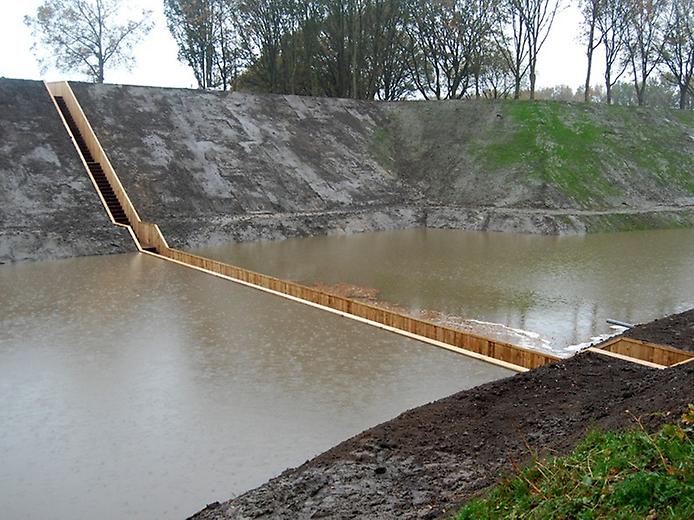 В 17 столетии здесь была построена крепость, служившая рубежом для защиты здешних земель. Форт окружили мелким грязевым рвом, слишком глубоким чтоб пройти вброд, и слишком мелким чтоб перебираться на лодке. После того, как недавно форт открыли для туристов, необходимо было решить проблему с переправой через ров. Обычный мост испортил бы картину, потому было принято оригинальное решение, утопить мост в воде