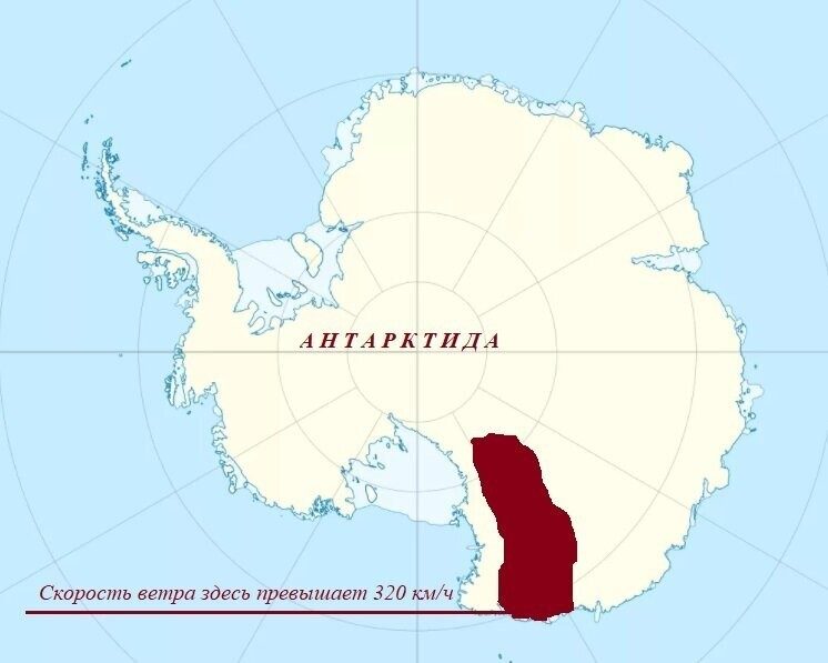 На самом холодном континенте нашей планеты есть место, где скорость ветра превышает 320 километров в час. Это примерно 90 метров в секунду.
