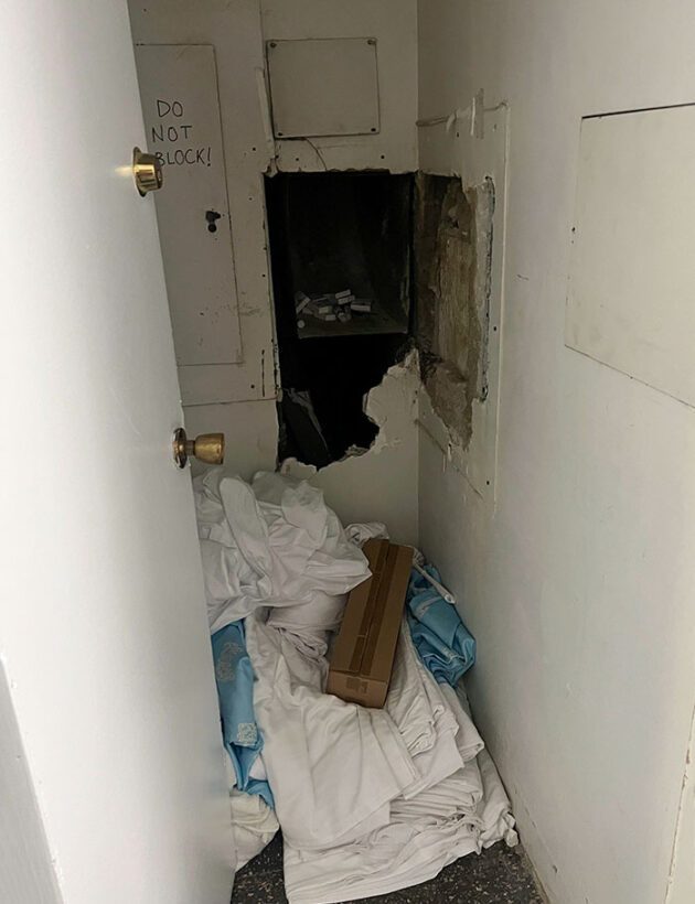4. Уборщицы в отеле оставили открытой дверь в кладовку, где они хранят чистые простыни и мыло.