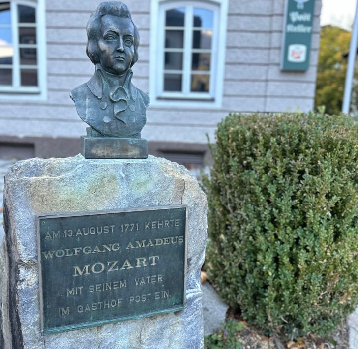 Надпись: «13 августа 1771 года Вольфганг Амадей Моцарт и его отец ели в этой гостинице».