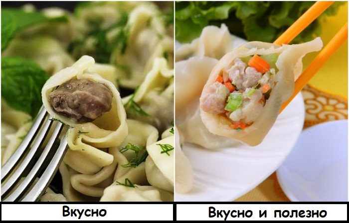В России пельмени принято готовить с фаршем или кусочками мяса. Иногда используется свинина, иногда говядина, реже курица. Китайцы подобного увлечения жирной едой не разделяют. По их мнению, пельмени должны быть не только вкусными, но и полезными. По этой причине во многих китайских семьях в качестве начинки для блюда используется 50% овощей и 50% мяса. Получается не менее сытно и оригинально. Овощи можно использовать любые, по своему усмотрению.