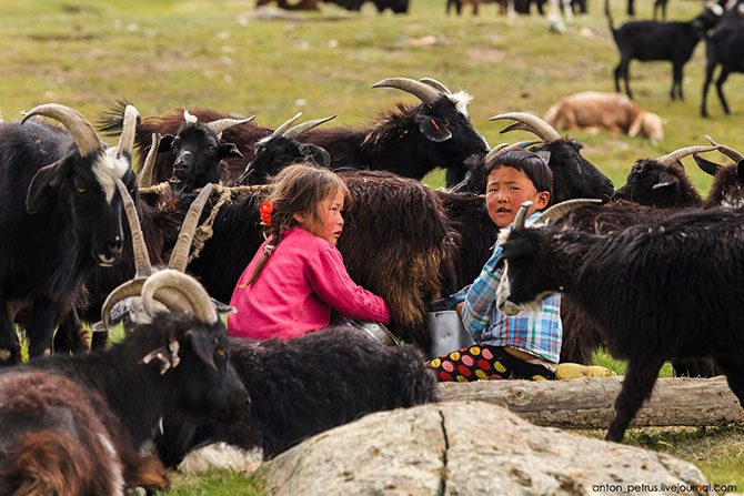 В гости к монголам мы попали очень вовремя — как раз во время вечернего доения. Поразило, что заняты были абсолютно все — от мала и до велика. Детки и бабушки доили козочек, практически не обращая на нас внимания.