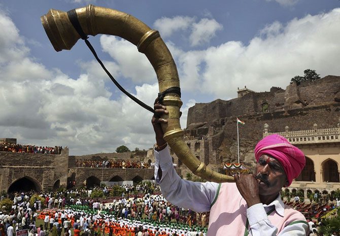 Артисты выступают возле форта Голконда в Хайдарабаде.