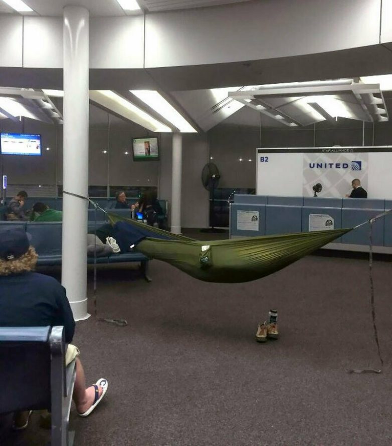 Кто-то прихватил с собой надувной матрас и вывел отдых в аэропорту на новый уровень