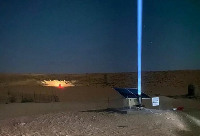Огромные «лазерные указки», направленные в небо, должны показать путникам, куда идти, чтобы найти воду и ночлег. Оказывается здесь это — настоящая проблема, люди погибают в пустыне даже в наше время, не понимая, куда идти.